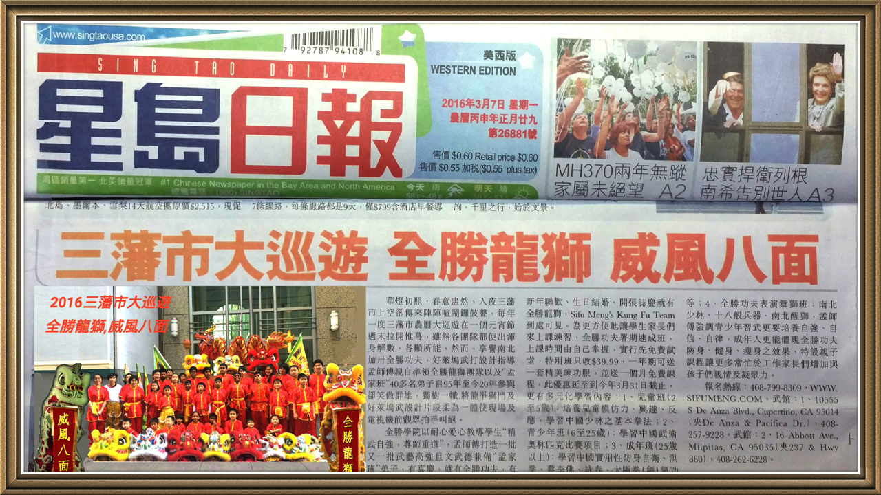 | Sifu Meng's Kung Fu Demonstration and Lion Dancing Teams are available to perform for any occasion including special events, such as New Year, business, grand openings, birthdays, anniversaries, celebrations...etc. Sifu Meng's Kung Fu Demonstrations and Lion Dancing can bring excitement, energy and good luck to any event.