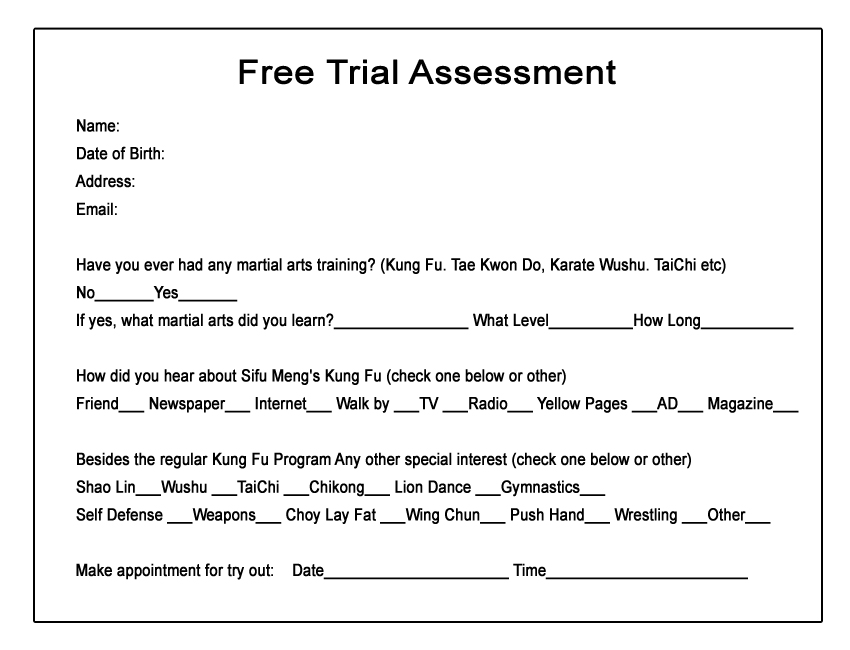 Sign up black belt program: 1 yr free for member of family.